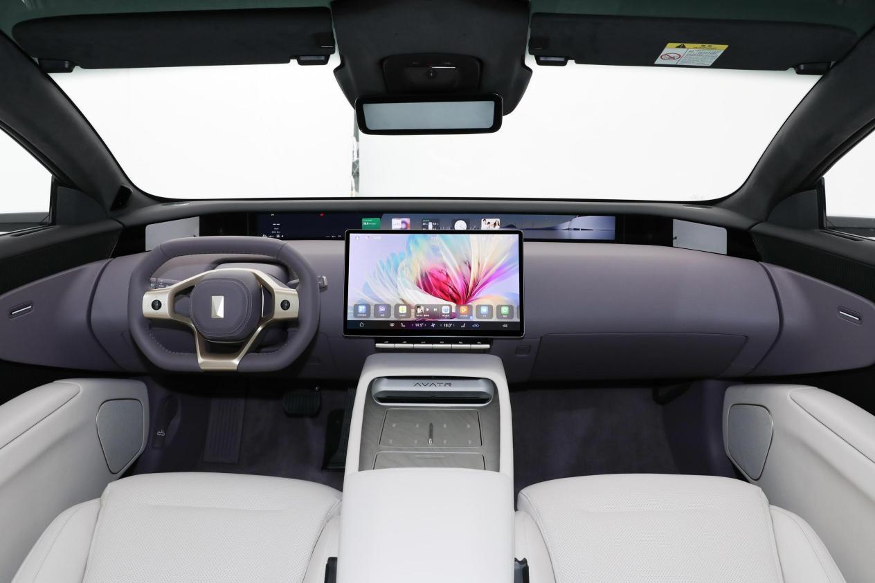 进入车内,阿维塔12的座舱以“情感智能”为核心理念,通过材质、空间与交互设计的结合,营造出兼具科技感与温度的氛围。座舱采用Dinamica超纤绒类麂皮顶棚与全粒面NAPPA真皮包裹,触感细腻且环保。中控区域搭载35.4英寸4K一体远端屏与15.6英寸智慧中控屏,配合华为鸿蒙座舱系统,实现了多屏联动与生态无缝衔接。例如,导航信息可跨屏流转,语音助手支持四分区精准识别,甚至后排乘客可通过悬浮天幕屏独立控制娱乐功能。