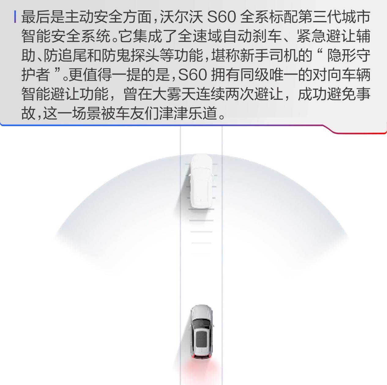 其次是全系车型标配前排正面气囊、前排侧气囊,侧面头部气帘等6气囊,系统根据碰撞力度来决定气囊的充气程度,避免受到二次伤害。甚至是被忽视的地方,沃尔沃S60也进行了加强处理,比如WHIPS头颈保护系统,当发生碰撞时,座椅靠背会跟着乘坐者的向后运动,通过靠背和坐垫之间的能量吸收变形部件,从而对碰撞进行缓冲以减小头颈部和脊柱的受力,为车内乘员提供最大程度的保护。