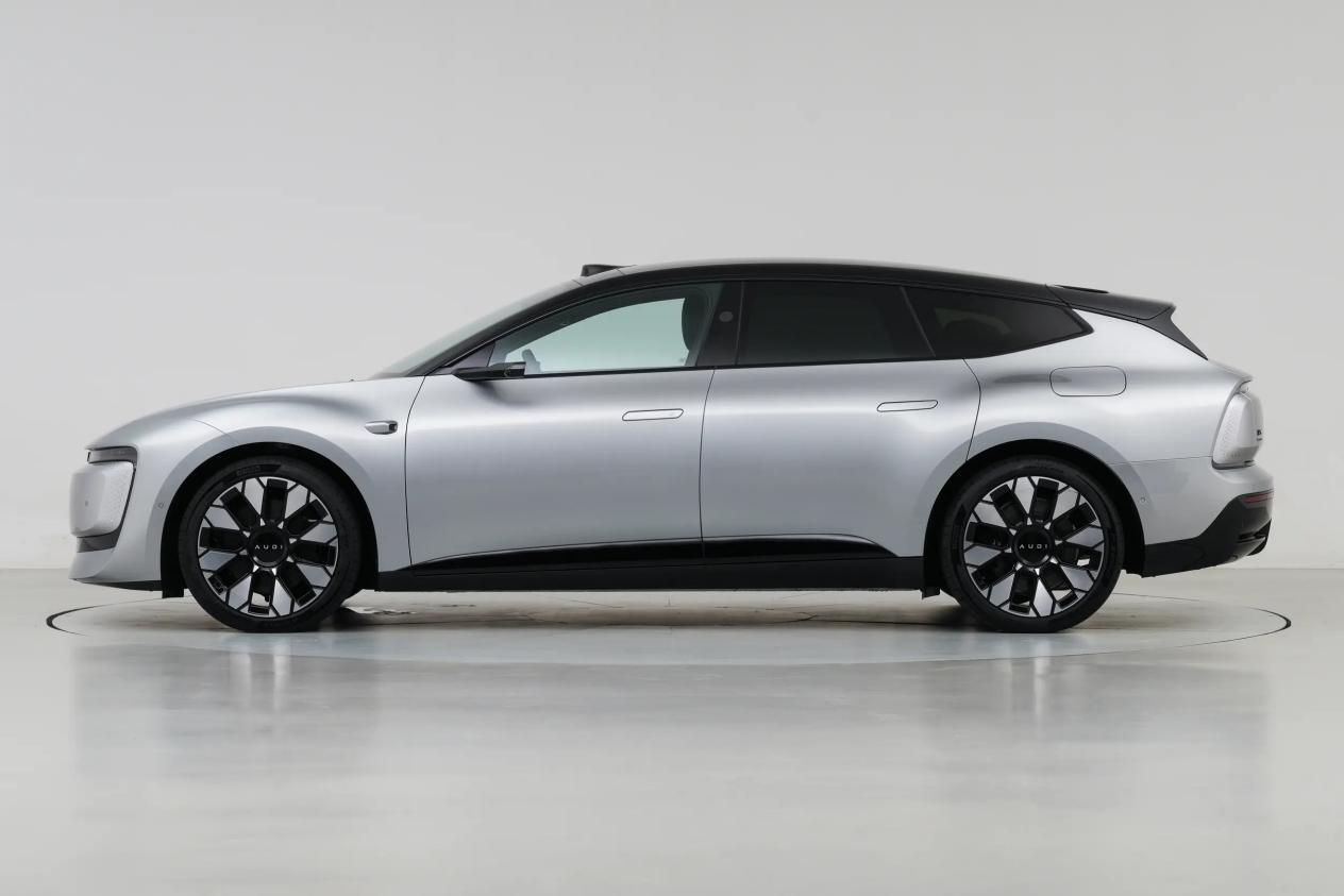 两台车都做有类似的旅行、瓦罐的车身构造,颜值自然就是重要一环,甚至能直接影响到用户的购车决策。先来看奥迪 E5 Sportback,这台车的设计,基本延续了概念的设计手法,整体的视觉效果比较科幻。具体来看,奥迪 E5 Sportback的设计十分简洁,并且采用了环形光幕的设计,配合上3D悬浮LOGO灯,在解锁时,光幕会向外层层点亮,仪式感很到位。大灯规格上,奥迪 E5 Sportback也给到了矩阵式LED大灯,可以做到智能分区照明。作为豪华纯电轿跑,奥迪 E5 Sportback的车侧线条也很流畅,修长的身段会显得很优雅,而且奥迪 E5 Sportback还配备了电子外后视镜,科技感更足,雨天的视觉效果更好,甚至奥迪 E5 Sportback还配备了合资车中比较少见的自动感应门,开关门也会更优雅。