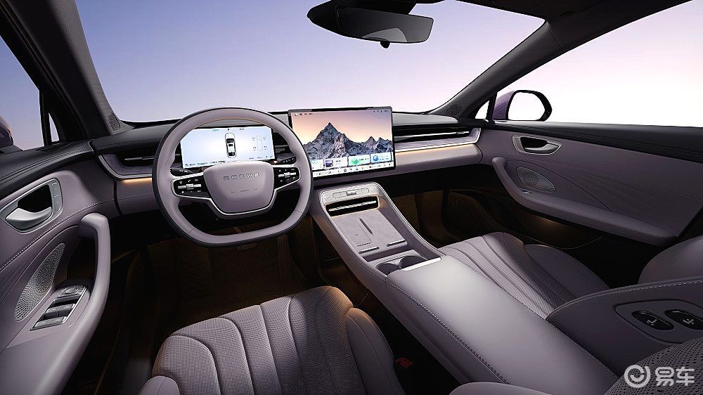 内饰方面,荣威M7 DMH采用极简风格设计,配备15.6英寸2.5K悬浮式中控大屏和10.25英寸全液晶仪表组合,搭配双辐式多功能方向盘和电子怀挡式换挡机构。副仪表台区域提供物理按键、双50瓦手机无线充电面板,兼顾美观与功能性。内饰提供云母灰和玛瑙米两种配色选择。