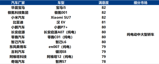 据中国质量协会官网信息,此次小米SU7在纯电动中大型轿车用户满意度评测中获得82分的最高分,与宝马i5和极氪001并列。