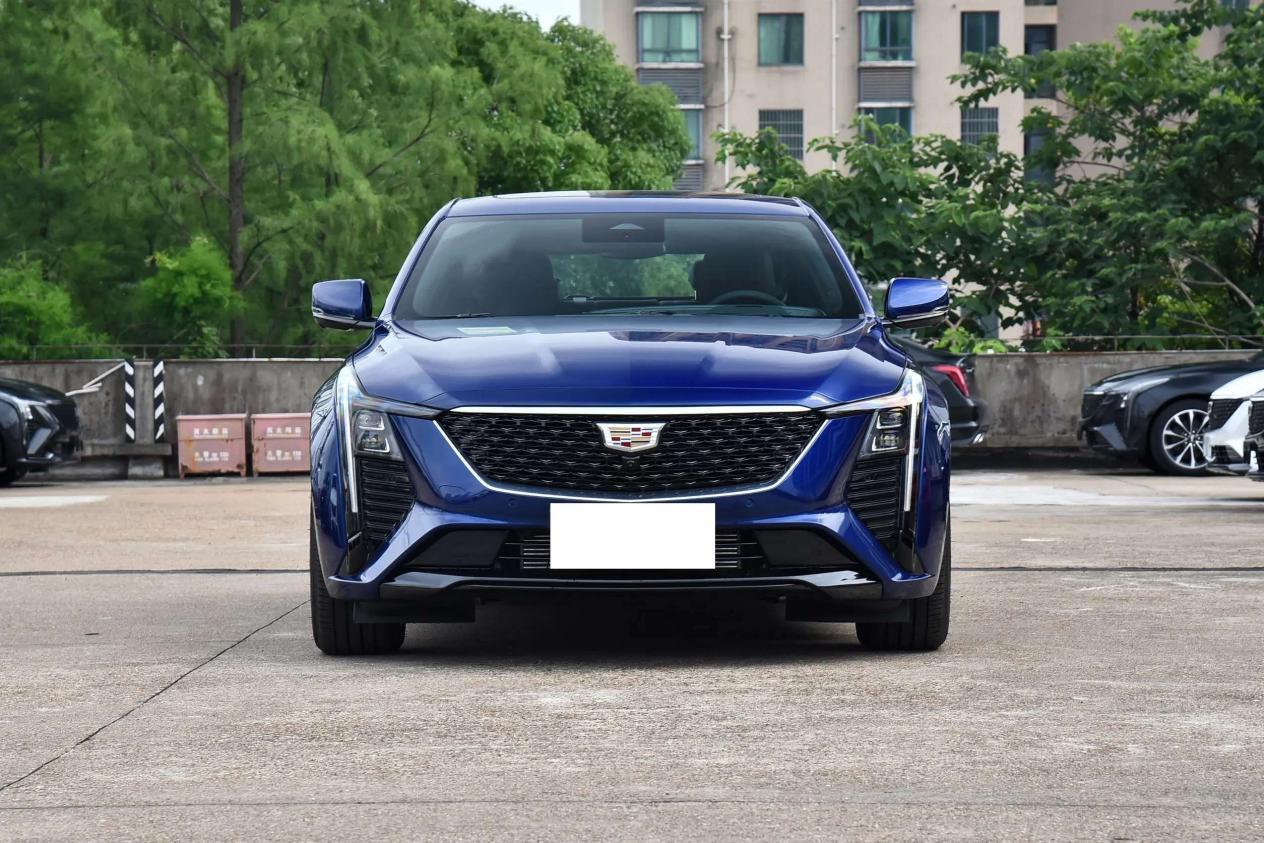 沃尔沃S60的前脸设计以直瀑式格栅为视觉中心,两侧叶片状大灯组通过黑色饰件形成递进式布局,有效强化了前脸的立体层次感。车身侧面采用上柔下锋的双腰线设计,配合18英寸铝合金轮毂的几何切割造型,与尾部极具辨识度的"C"形LED尾灯形成设计呼应,整体呈现出优雅从容的视觉基调。凯迪拉克CT5则通过黑色盾形格栅构建前脸核心,倒"L"形日行灯与矩阵式远近光灯组构成锐利的折角线条,赋予车头强烈的时尚气息。侧身贯穿式水切线从翼子板延伸至尾灯,搭配微微上扬的鸭尾扰流板和双边双出排气布局,共同塑造出富有张力的运动姿态。