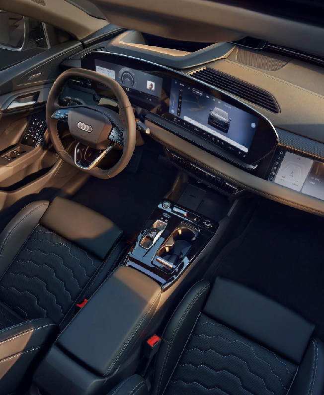 全新奥迪 Q5L 的内饰堪称“科技天花板”,彻底颠覆了传统豪华车的座舱布局。11.9 英寸液晶仪表 + 14.5 英寸中控屏组成的曲面双联屏,搭配 13.1 英寸 HUD 抬头显示和 10.9 英寸副驾娱乐屏,实现了同级独有的五屏联动,可与手机投屏无缝衔接,沉浸式智舱体验拉满。车机搭载为中国用户定制的全场景语音助手,交互精准高效,再加上大面积软质包裹和金属饰条点缀,科技感与质感兼顾。舒适性配置更是诚意十足,全系标配方向盘电动调节、加热 + 位置记忆,前排座椅加热、通风、按摩,后排座椅加热也没有缺席,配合 Bang&Olufsen 豪华音响和智能氛围灯,乘坐体验堪比更高价位车型。