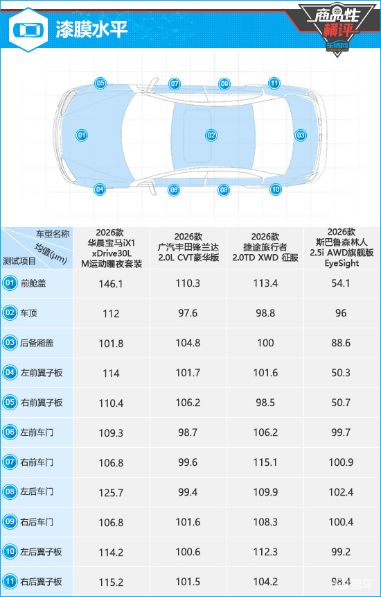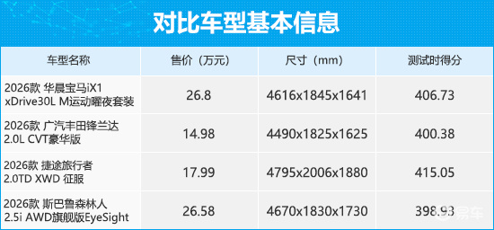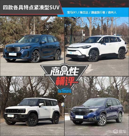 随着汽车行业竞争日趋白热化,消费者的需求也愈发多元。紧凑型SUV市场作为各大品牌的必争之地,得益于风格迥异的产品不断涌现,满足了不同用户的审美喜好。在往期的新车商品性评价中,我们曾测试过多款紧凑型SUV产品。今天我们从中挑选了四款各具特点的车型,它们分别是华晨宝马iX1、广汽丰田锋兰达、捷途旅行者以及斯巴鲁森林人。本文将通过各项测试数据对比,看看四款车型在商品性方面的表现如何。