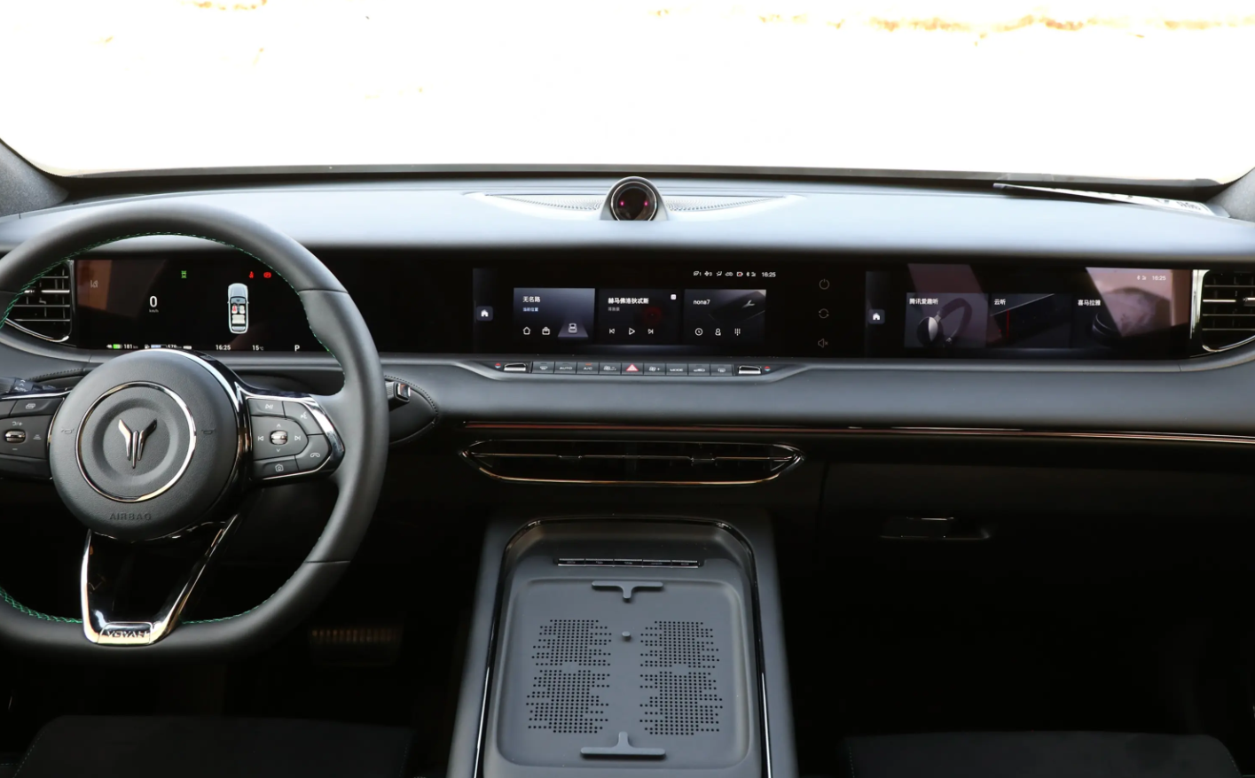 星纪元ET:宽大饱满的封闭式前脸设计,分体式大灯设计独特,上方是贯穿式的LED灯带,庞大的车身饱满富有张力,给你很大的视觉冲击。