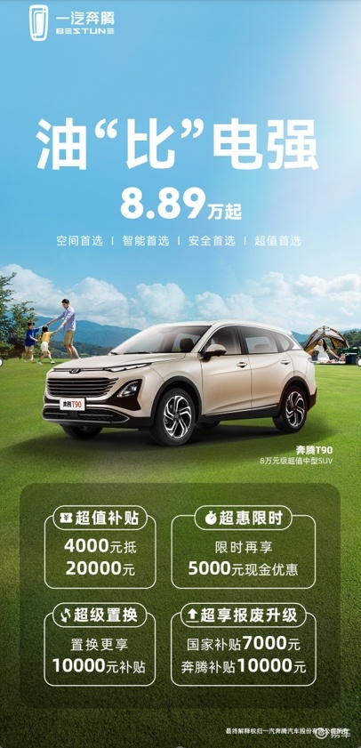 【版权声明】车平台提醒您:请在浏览本网站关于【奶爸车不止理想L8!快看降到8万多的奔腾T90】文章时,请您务必阅读并理解本声明。本站部分内容以及图片来源于商家投稿和网络转载,如网站发布的有关的信息侵犯到您的权益,请及时与我们取得联系,我们及时删除处理。