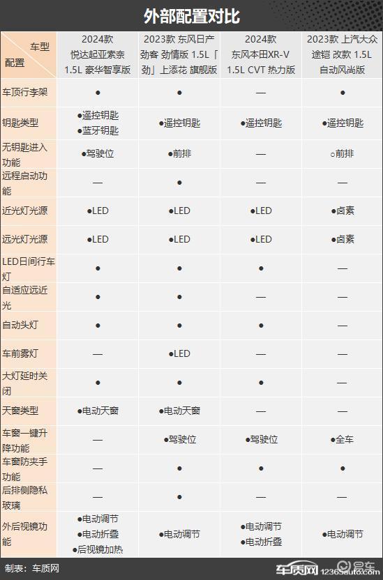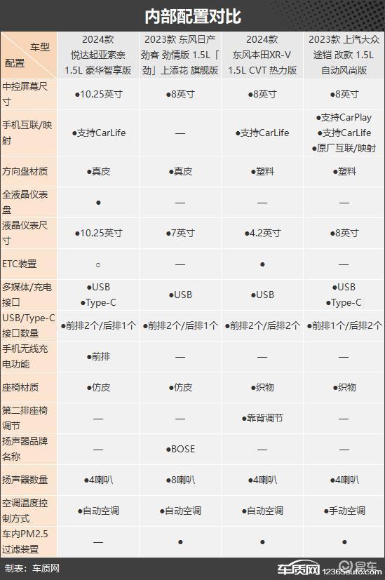 智能化配置方面,悦达起亚索奈和东风日产劲客的表现都非常出彩,像时下主流的OTA升级、车联网等配置均有装备,特别是悦达起亚索奈还支持双区域语音识别唤醒功能。而东风本田XR-V和上汽大众途铠在智能语音交互方面同样是缺失较多。