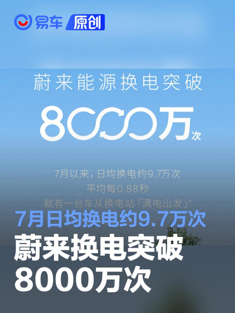(原标题:蔚来换电突破8000万次,7月日均换电约9.7万次)