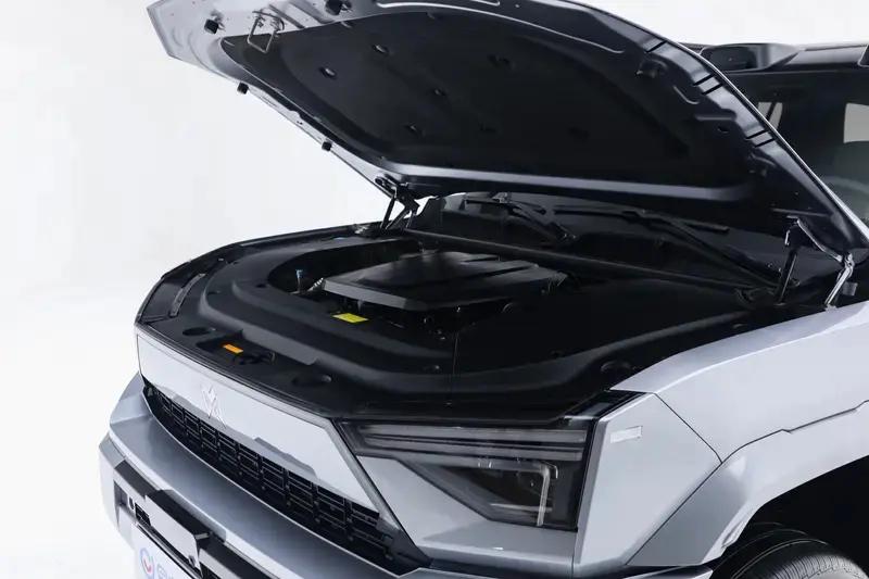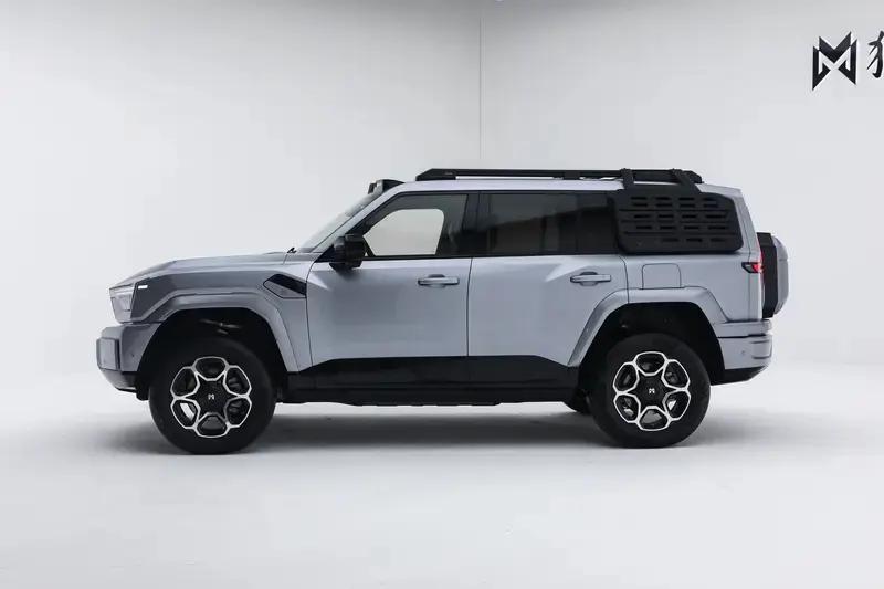 车身侧面来看,新车的离地间隙较高,车顶配备了行李架,车身侧面提供了梯子,方便爬到车顶存取物品,另一侧则配备了一个扁平的储物箱。新车提供了公路轮胎和AT全地形胎,全地形胎拥有更大的花纹,能够大幅提升非铺装路面的抓地力。