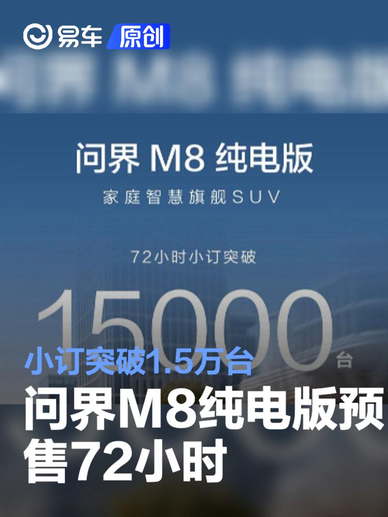 (原标题:问界M8纯电版预售72小时小订突破1.5万台,将于8月上市)