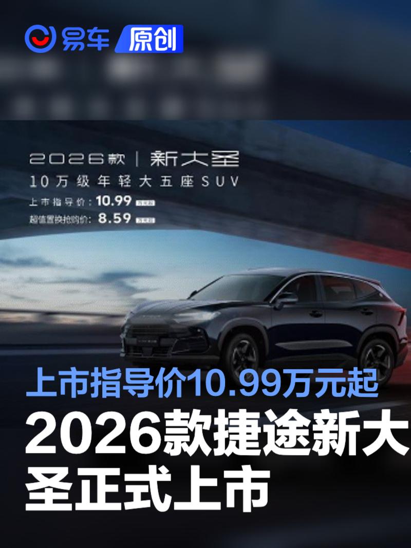 易车讯 7月30日,2026款捷途新大圣正式上市,新车定位于“10万级年轻大五座SUV”,共推出1.5T精英版、1.5T豪华版、1.5T黑武士版、1.5TD旗舰版四款车型,官方指导价为10.99-12.79万元 。