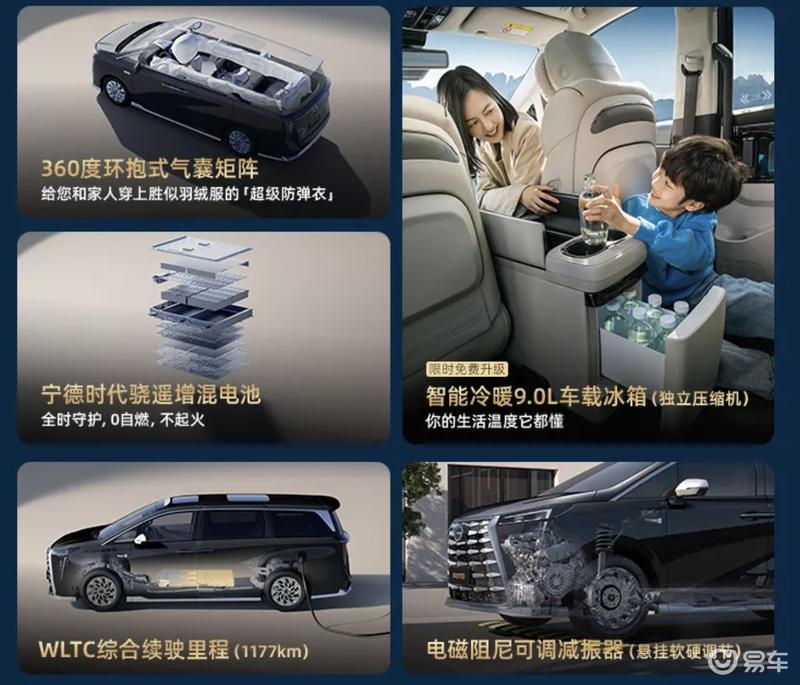 电池方面,新车搭载宁德时代骁遥增混3C电池,纯电续航里程可达248公里,综合续航1177公里,仅需14分钟便可将电量从从30%充至80%。此外,新车还全系标配SDC电磁悬架。