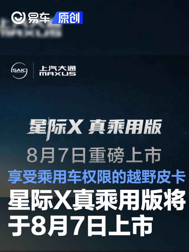 (原标题:星际X真乘用版将于8月7日上市,享受乘用车权限的越野皮卡)