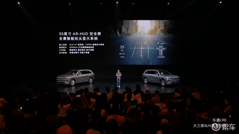乐道L90还配备了17.3英寸3K吸顶娱乐屏,屏占比高达91.5%,以及8英寸后排场景屏,并配备35英寸AR-HUD安全屏全景智能抬头显示系统。