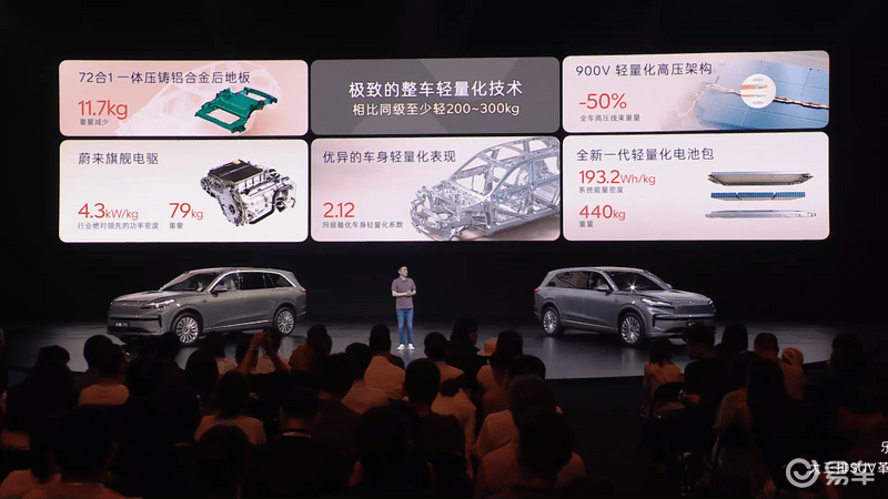 动力方面,新车拥有全域900V三电技术,并会推出后驱以及四驱版车型,后驱版车型电机最大功率340kW,轮边扭矩5000N·m,零百5.9秒;四驱版车型前、后电机最大功率分别为100/340kW,零百4.7秒。动力电池方面,新车搭载85kWh的全新一代轻量化电池包,电池包高度116mm,系统能量密度193.2wh/kg,CLTC综合工况续航可达到605km。