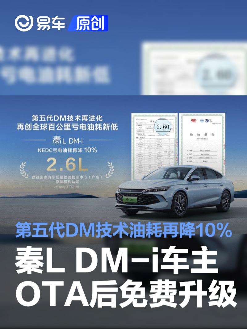百公里亏电油耗刷新至2.6L 所有秦L DM-i新老用户OTA后可享