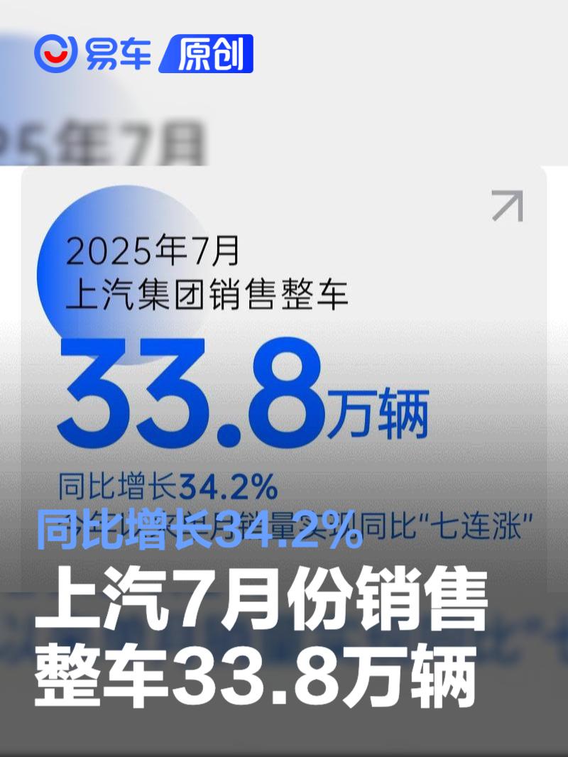 (原标题:上汽7月份销售整车33.8万辆,同比增长34.2%)