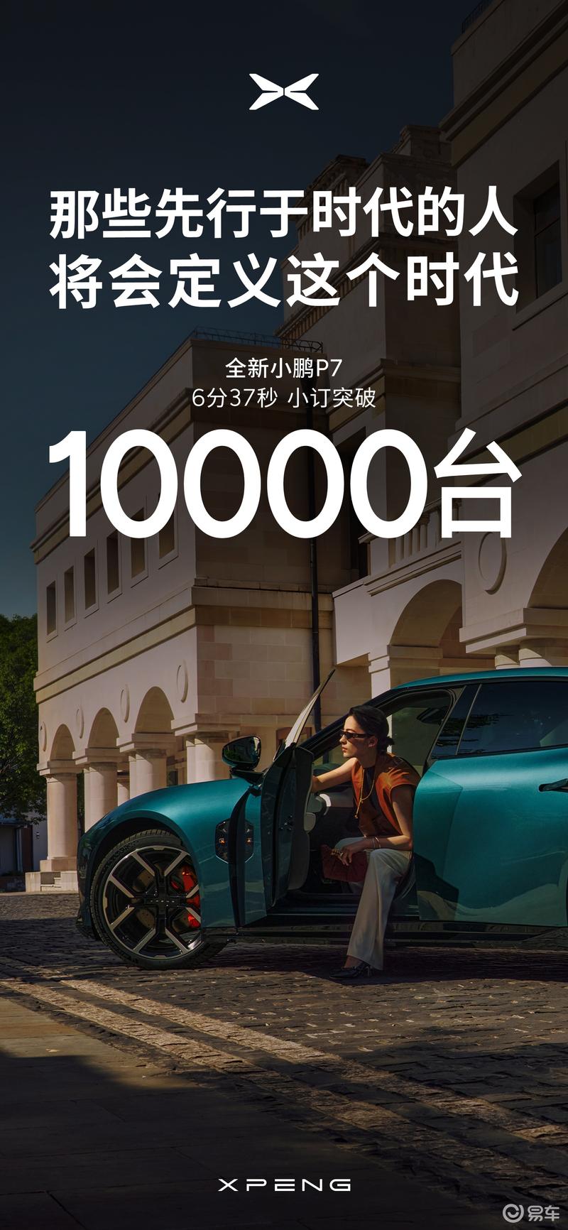 易车讯 8月6日,全新小鹏P7正式发布,新车即刻开启预订,99元意向金可抵扣3000元购车金,全新小鹏P7将于本月正式上市。最新官方数据显示,全新小鹏P7开启预订仅6分37秒小订就突破了1万台。