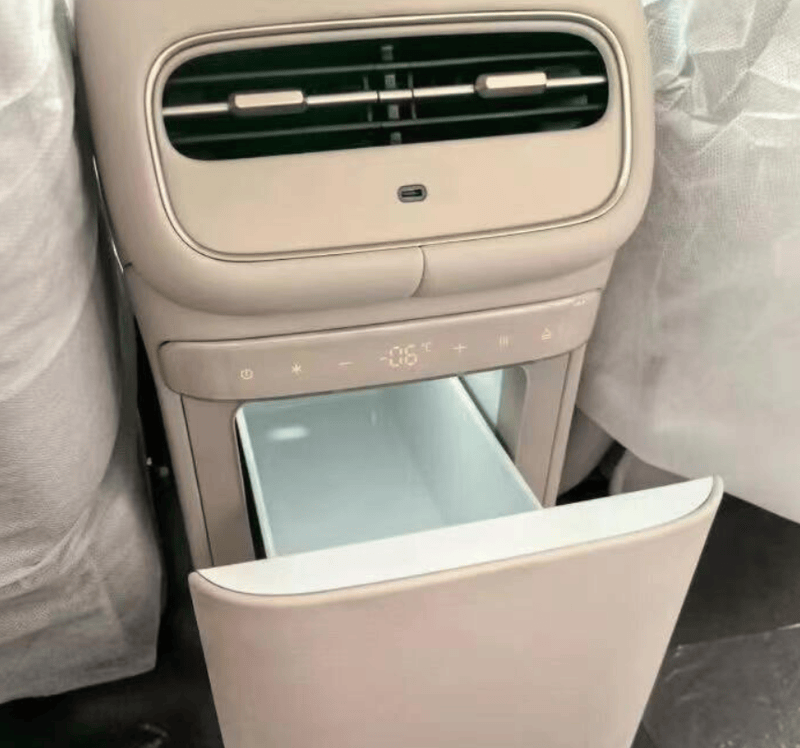 此外,还可以看到新车配备了车载冰箱、氛围灯、二排座椅加热等功能。