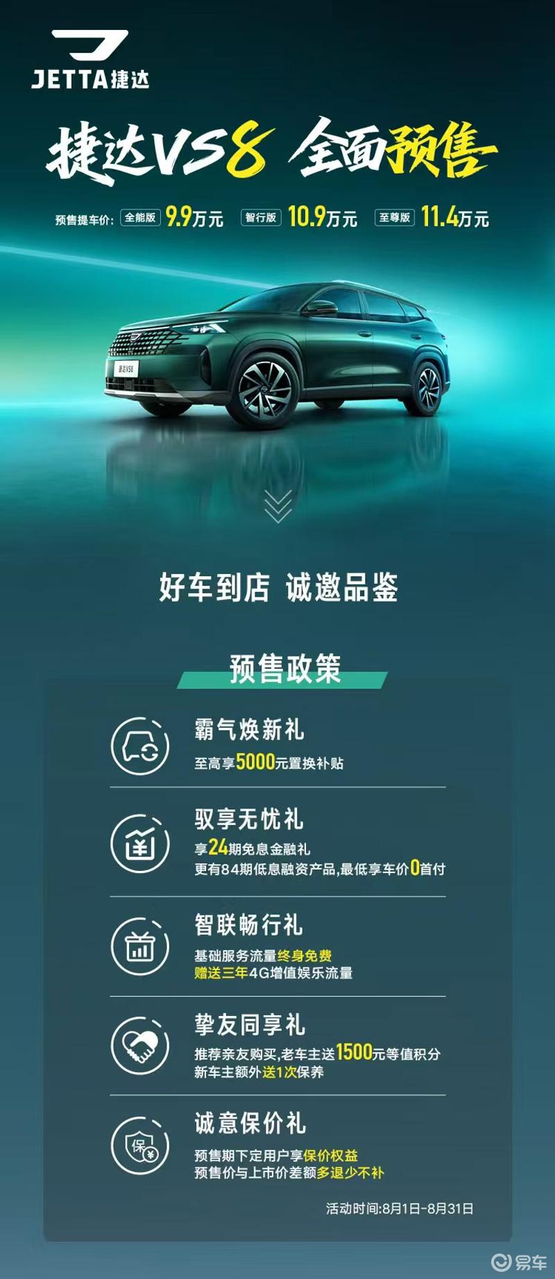 (原标题:捷达VS8开启预售,预售价9.9万元起)