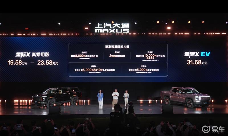 易车讯 8月7日,上汽大通2026款星际系列皮卡正式上市,其中星际X EV售价31.68万元;星际X真乘用版售价区间19.58-23.58万元;2026款星际L一口价区间7.98-14.98万元。