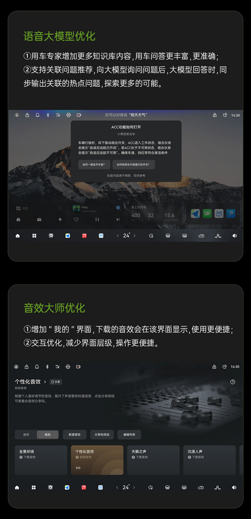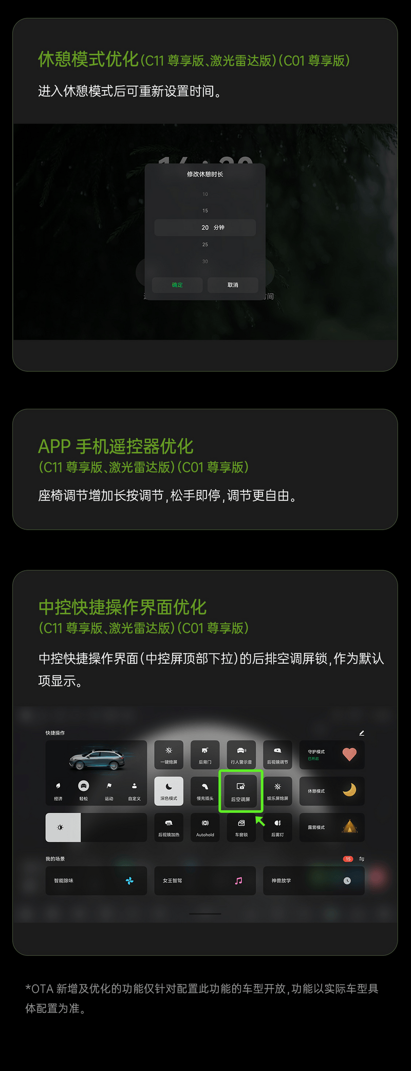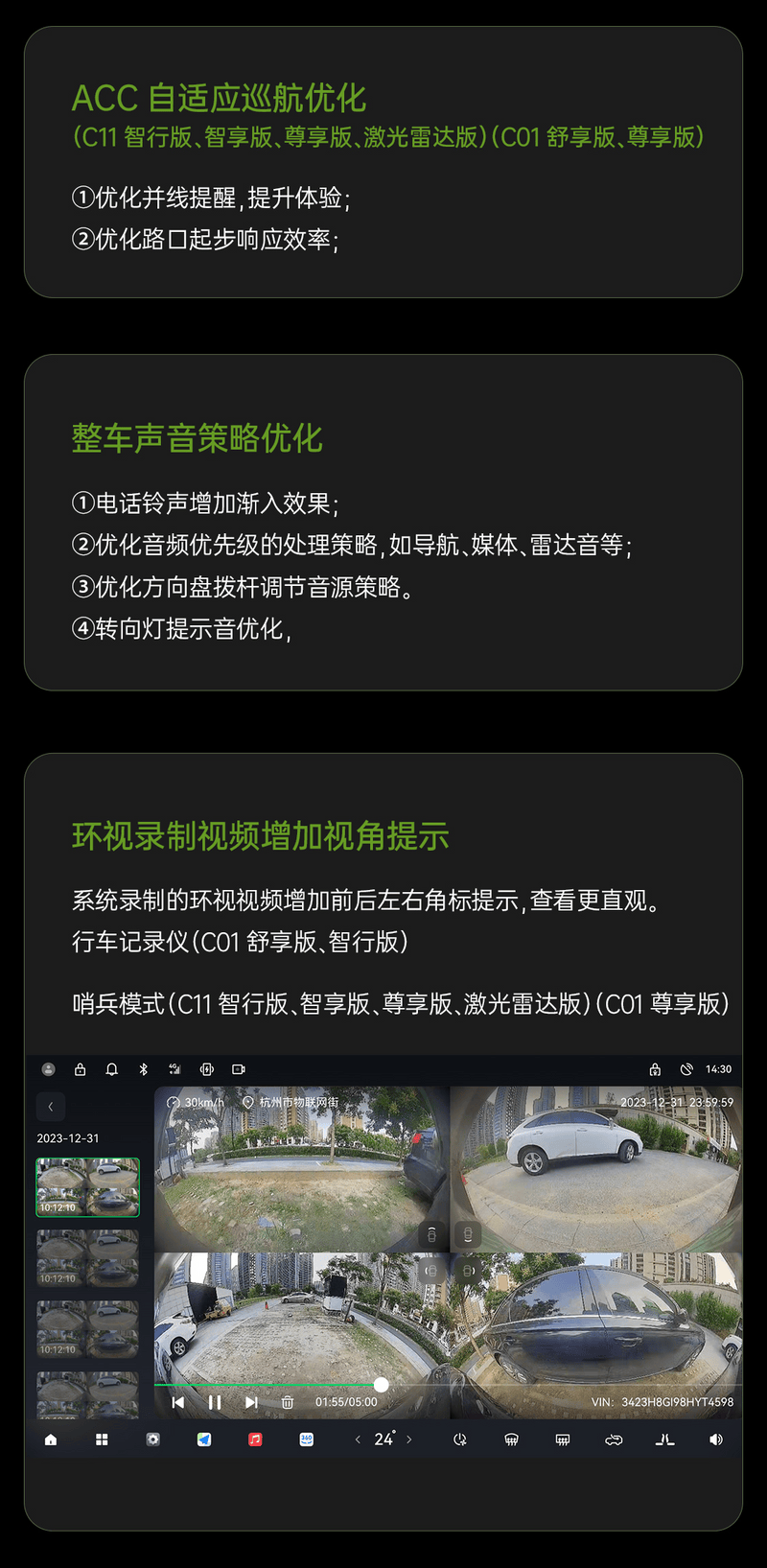【版权声明】车平台提醒您:请在浏览本网站关于【2024款零跑C01/C11推OTA升级,新增离车供电模式】文章时,请您务必阅读并理解本声明。本站部分内容以及图片来源于商家投稿和网络转载,如网站发布的有关的信息侵犯到您的权益,请及时与我们取得联系,我们及时删除处理。