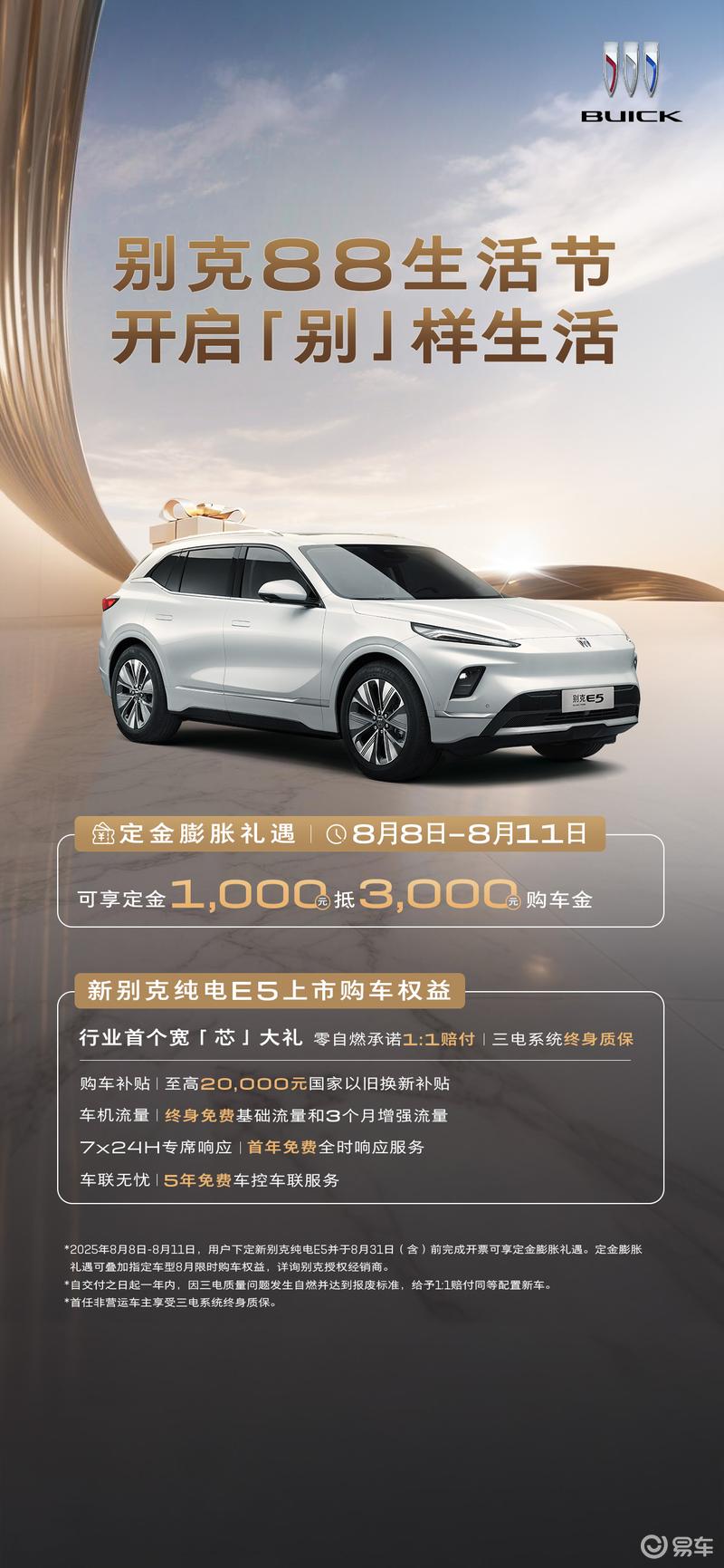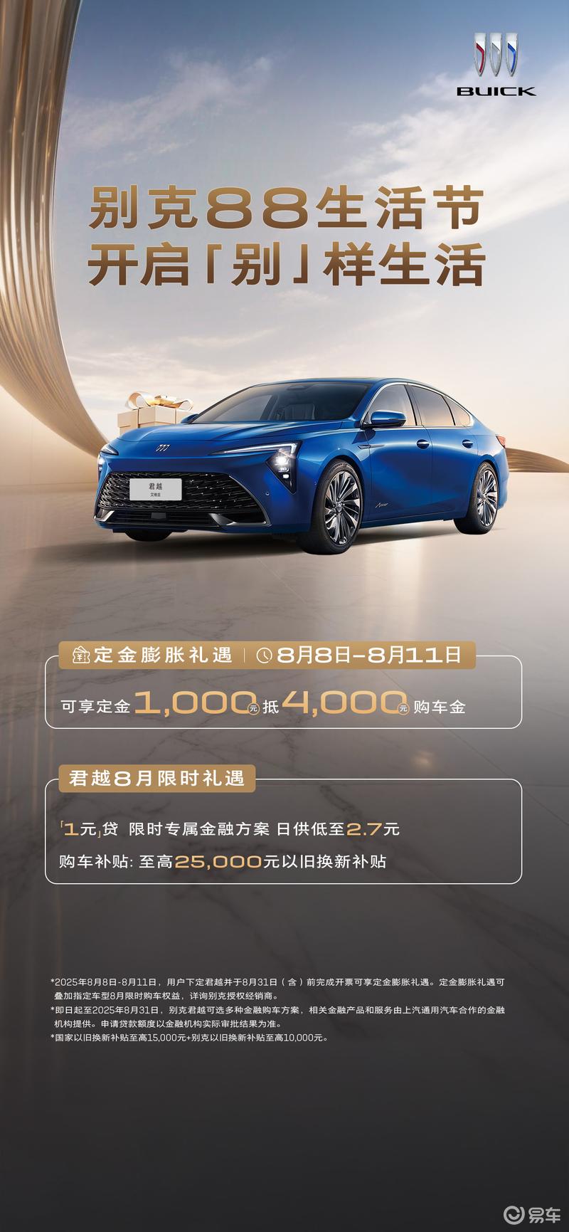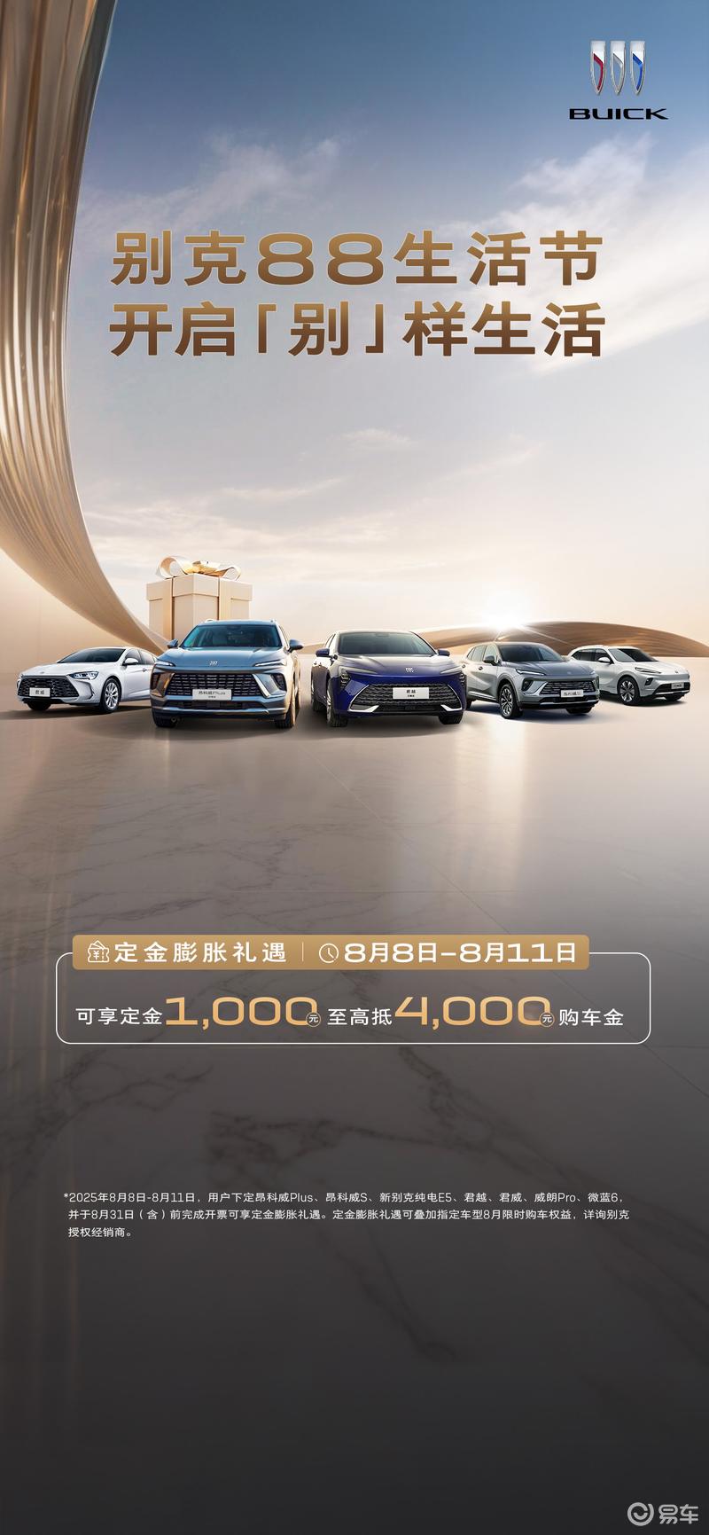 别克品牌推出限时购车政策,1000元定金抵4000元购车金