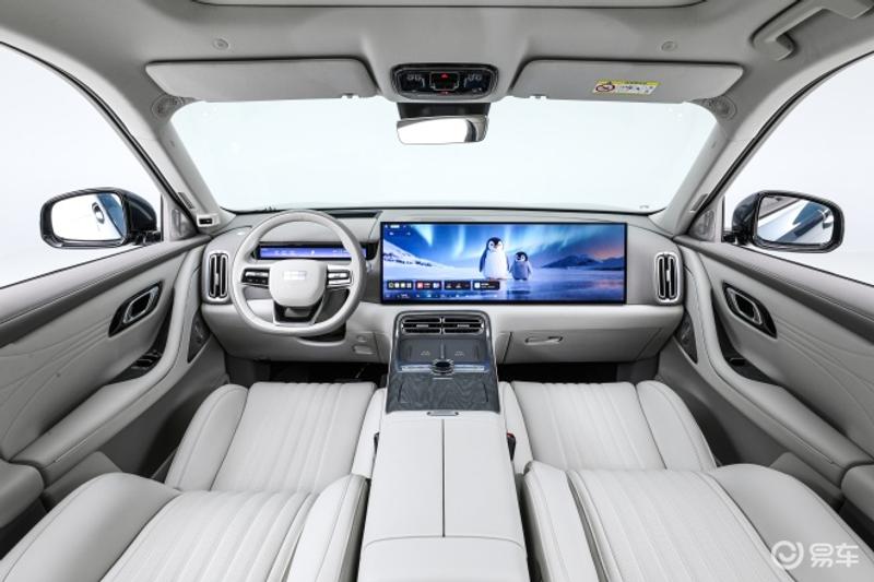 内饰方面,由液晶仪表盘和双联屏组成,整体视觉效果极具张力。新车内饰与领克900类似,配备中控屏的尺寸为30英寸,6k分辨率。