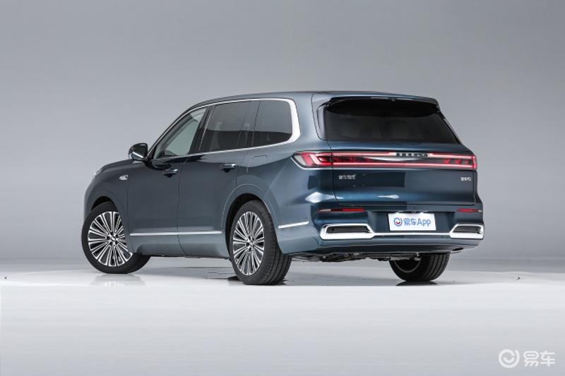 车身侧面,B柱较宽的银色饰条很显豪华,第二四边形的尾窗比较方正面积非常大,显沉稳的同时很符合这个级别大型车的定位。新车筋线从车头一直延伸至车尾,提升了侧面的视觉冲击力,而优秀的离地间隙预示这通过性上非常值得期待,此外还会配备造型精致的多辐铝合金轮圈。车身尺寸方面,新车长宽高为5205/1999/1800mm,轴距为3030mm。