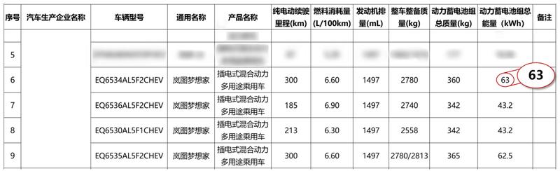 据工信部在7月公布的《第十九批减免车辆购置税的新能源汽车车型目录》信息显示,26款岚图梦想家插混版新车将推出62.5kWh、43.2kWh两种不同容量的电池组。