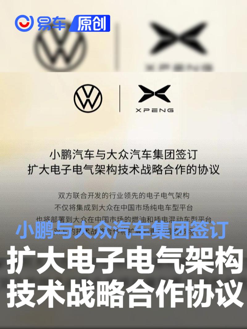 小鹏与大众汽车集团签订扩大电子电气架构技术战略合作的协议