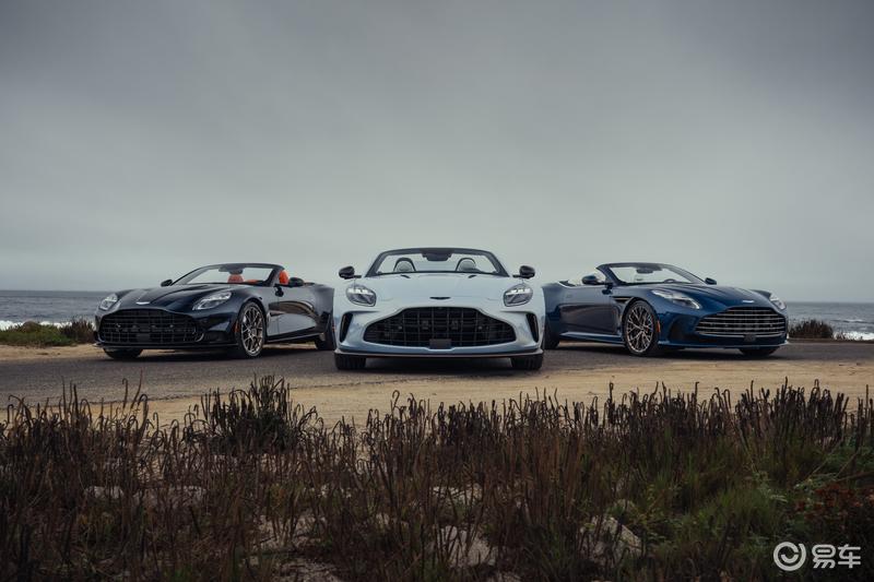 其中Vantage Roadster车型采用鲭鲨灰(Mako Blue)外观漆面,呼应晨雾氤氲的黎明天际色调;DB12 Volante车型以塞舌尔蓝(Seychelles Blue)呈现,捕捉午后艳阳的蓬勃力量;Vanquish Volante车型则选用深海蓝(Ultramarine Black)涂装,定格暮色四合的神秘张力。