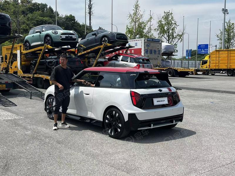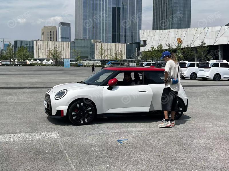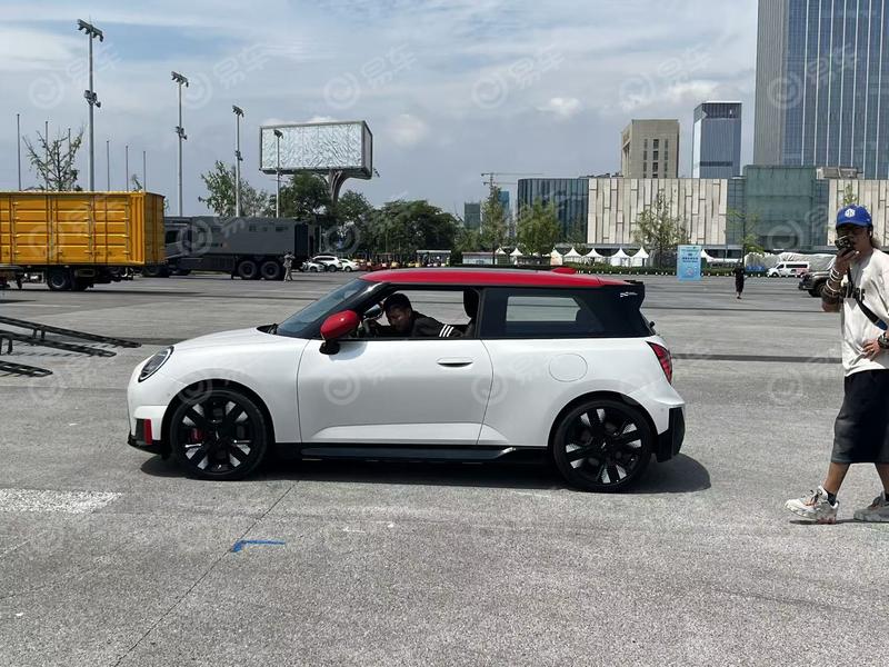 易车讯 在2025成都车展前夕,易车编辑拍摄到了一组全新电动MINI JCW的新车照片。新车整体设计延续现款造型,但在细节方面加入了诸多个性化元素,例如采用了双拼色车身以及新样式的轮圈等。