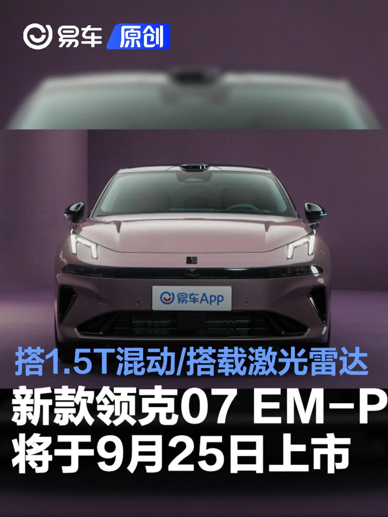 (原标题:新款领克07,EM-P将于9月25日上市,搭1.5T混动/配载激光雷达)