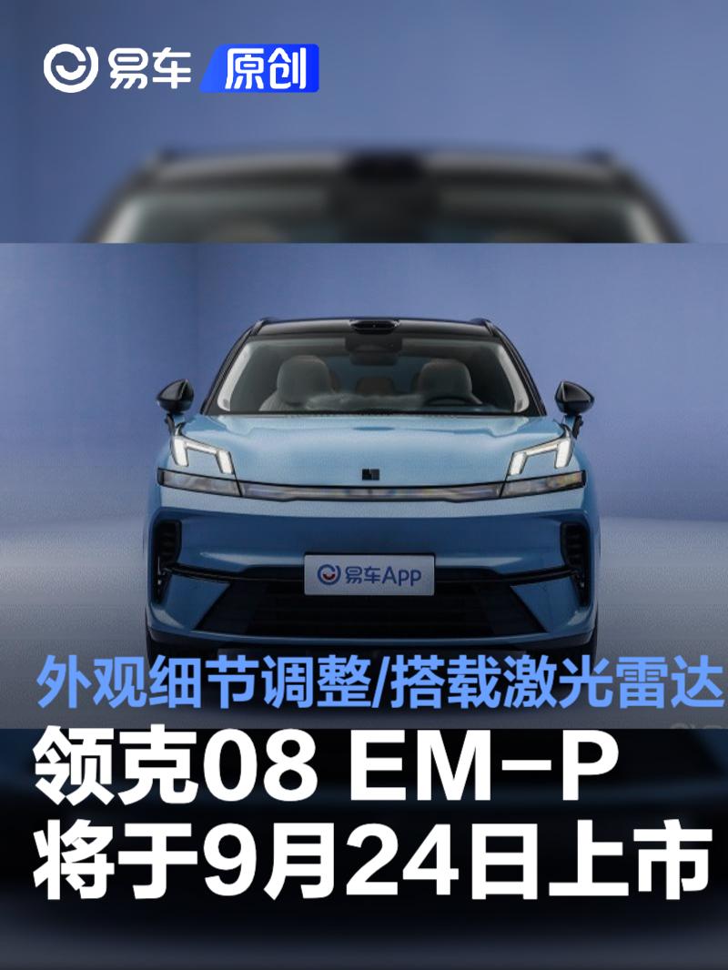 (原标题:新款领克08,EM-P将于9月24日上市,外观细节调整/搭载激光雷达)