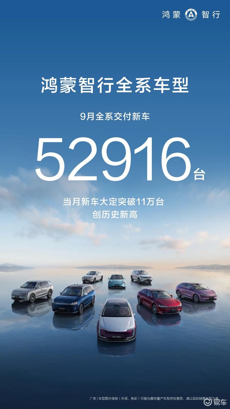 鸿蒙智行全系9月交付52916台,全系累计交付突破95万台