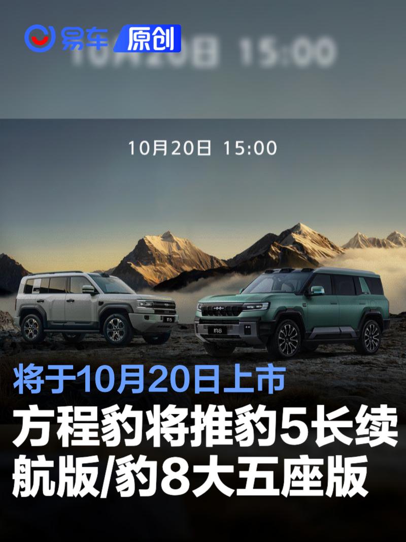 (原标题:方程豹将推豹5长续航版/豹8大五座版,将于10月20日上市)