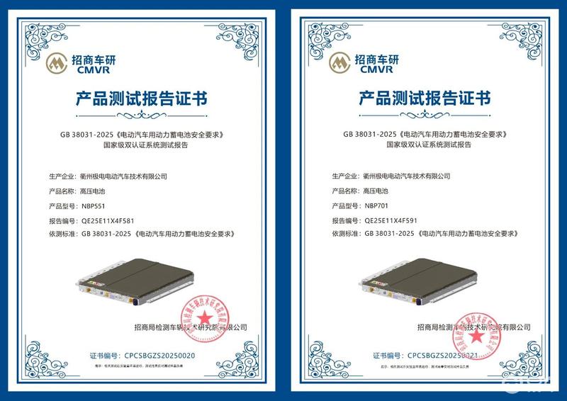 极氪9X搭载与宁德时代共同开发的6C混动专用电池,具备卓越的充电性能,SoC在20%至80%之间仅需9分钟,极大提升了用户的补能效率。在安全方面,该电池系统同样超越国家标准,全系配置的55kWh与70kWh电池均通过《电动汽车用动力蓄电池安全要求》(GB38031-2025)国家级双认证。该标准被誉为“史上最严电池安全标准”,首次强制要求热扩散“不起火、不爆炸”,技术指标严于欧美法规。这意味着,极氪9X的在安全性能上达到了国家权威认证的最高水准,为用户提供了坚实可靠的安全保障,是电池安全领域的实力天花板。在极氪,安全是检验豪华的唯一标准。极氪9X搭载的电池,以「超快充+高安全」的特点,为每一位用户的出行,提供高效与安全的双重保障。