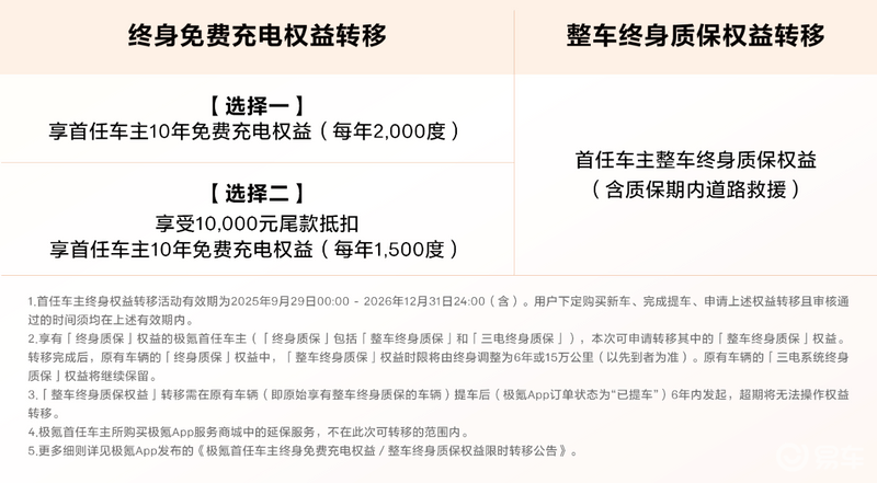 01、原有「终身免费充电权益」仍在有效发放中的极氪首任车主购买极氪9X,终身免费充电权益能不能进行转移?