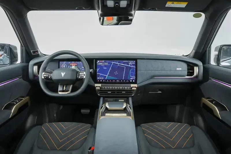内饰方面,深蓝G318整体采用了对称式设计,拥有密林黑、冰川蓝和圣湖绿三种配色。中控台中间配备了14.6英寸智慧屏,驾驶者前方是一块12.3英寸的全液晶仪表盘。电子挡杆采用了飞船推拉杆的设计,为了突出自身硬派SUV的定位,车内多处地方还设计了把手。配置方面,深蓝G318全系标配前排座椅通风加热、IACC、540°全景影像、Deepal OS生态升级+“显示增强”视觉体验、全车五面双层隔音玻璃、ENC主动降噪技术以及R-EPS转向系统。储物空间方面,深蓝G318后备厢的容积达到了818L,最大可扩充至1747L。