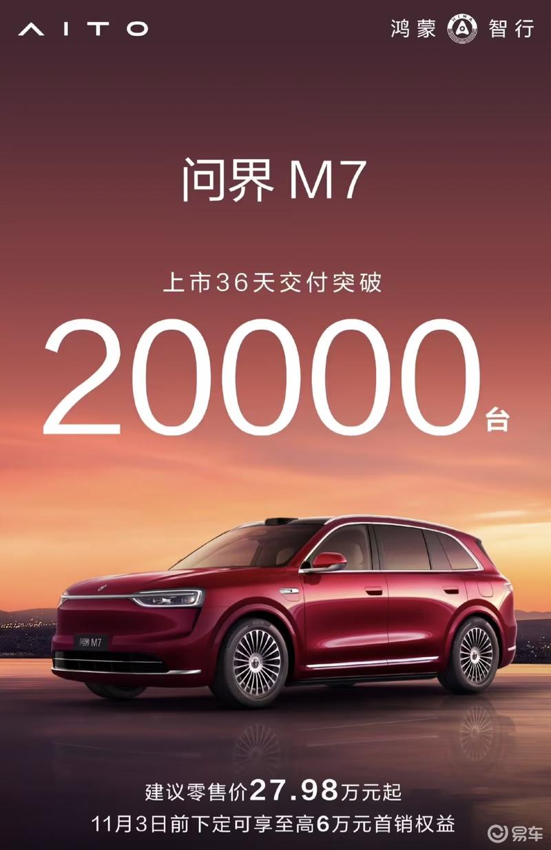 全新问界M7交付突破20000台,售价27.98万元起