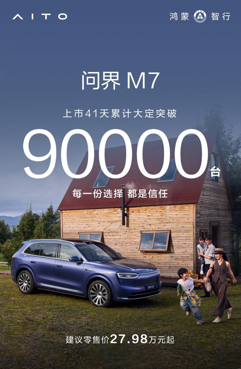 (原标题:全新问界M7上市41天累计大定突破9万台,售27.98万起)