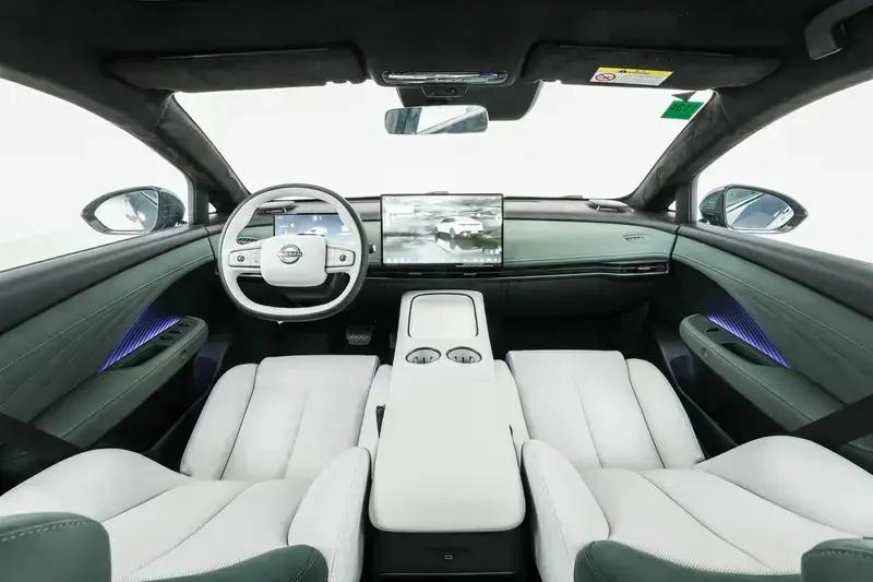 内饰方面,日产N7采用环抱式座舱设计,提供浅灰、森绿/雪白双拼色两款内饰风格可选,满足不同消费者的个性化需求。车内应用凝脂材质、超细纤维仿麂皮、麂皮织物、云纹软包等进行包覆,营造出温馨且豪华的驾乘氛围。