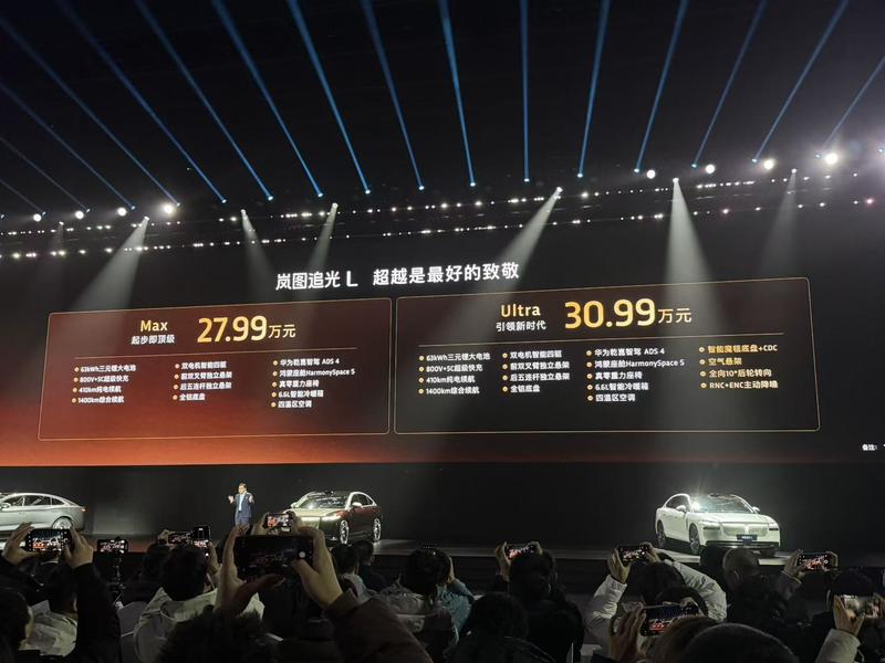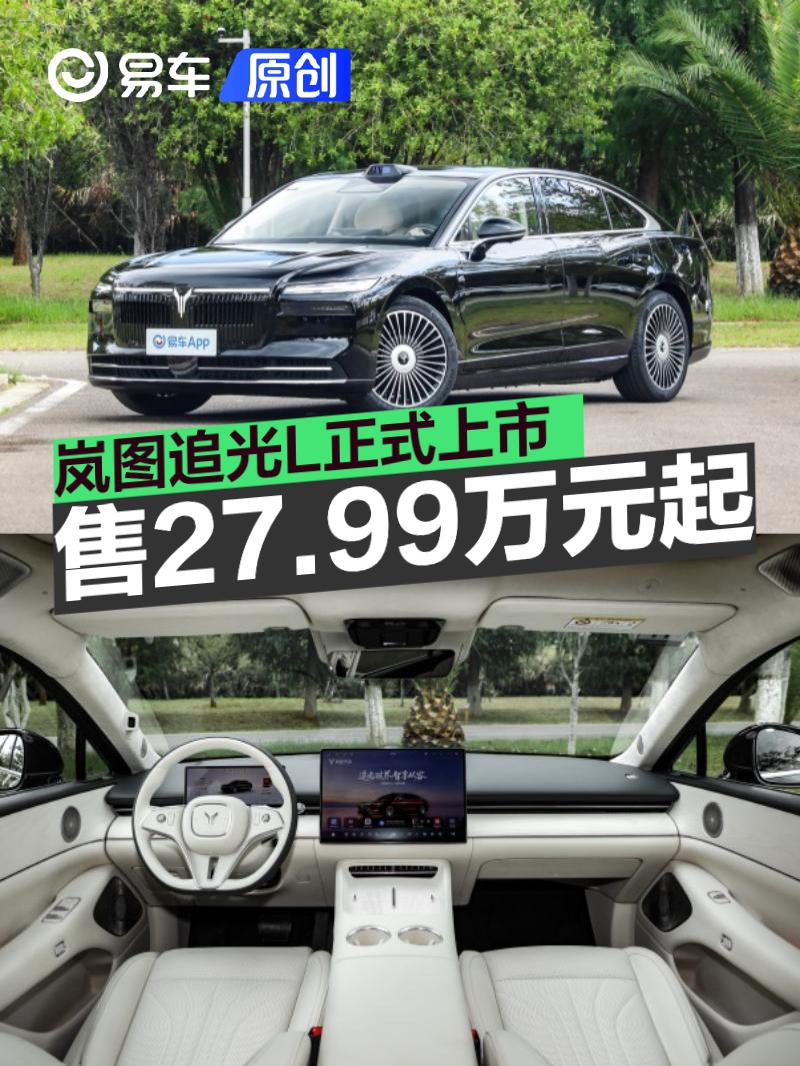 易车讯 12月10日,岚图汽车官方宣布旗下新时代旗舰轿车岚图追光L迎来正式上市,新车共推出2款车型,售价区间27.99-30.99万元。新车全系搭载华为乾崑智驾 ADS 4、鸿蒙座舱HarmonySpace 5,并标配双电机智能四驱、全域800V岚海智混技术+5C超充等旗舰技术。