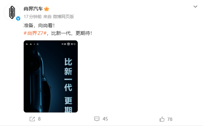 (原标题:尚界全新轿跑车Z7预告图公布,将于春季发布)