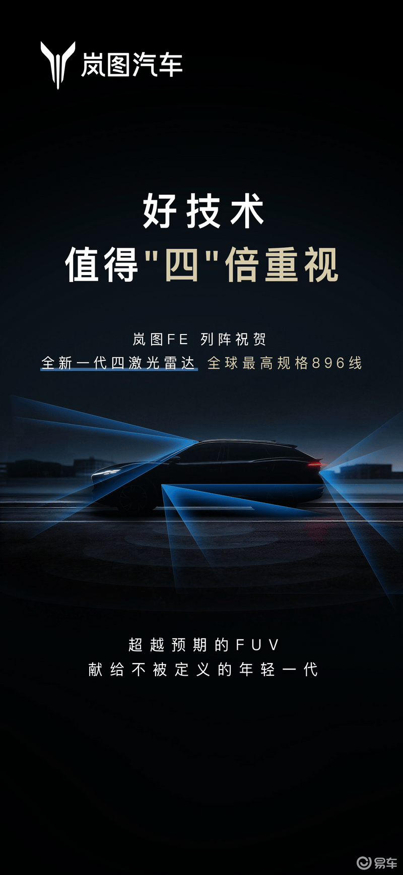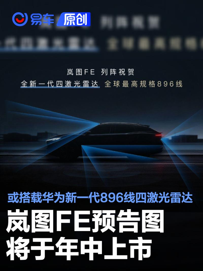 (原标题:岚图FE预告图,年中上市/或将搭载华为新一代896线四激光雷达)