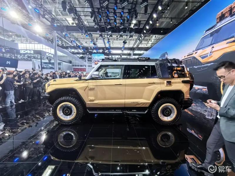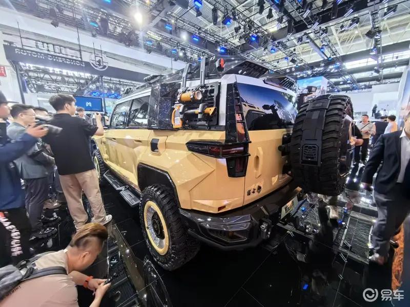 内饰方面,参考普通版车型,新车内造型充满机甲风,中控屏周围的“装甲”边框和空调出风口处类似铠甲的纹路设计,相当硬派。同时,挡杆区域的设计比较独特——采用了类似双挡杆的设计,左侧为挡位选择,右侧则为驾驶模式选择,拥有雪地、沙地、岩石等五种越野地形模式。配置部分,新车搭载无人机伴飞、反向充电、代客泊车、蟹行模式等技术。
