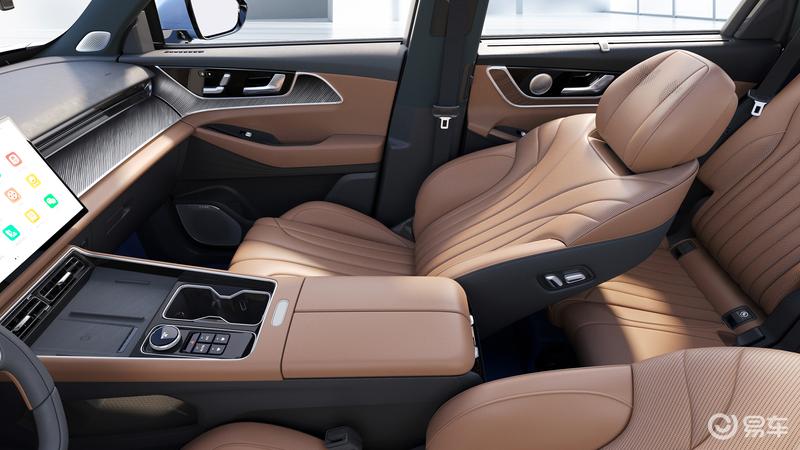 此外,新车还配备200像素摄像头的人脸识别、全时免唤醒、带通风冷却的无线充电面板、老板键等配置;并在中央通道区域保留了物理按键+旋钮控制,档位则采用了怀挡样式的电子换挡机构。另外,新车内饰还采用了大量的皮质面料,并拥有7座布局可选,进一步提升整车的高级质感。