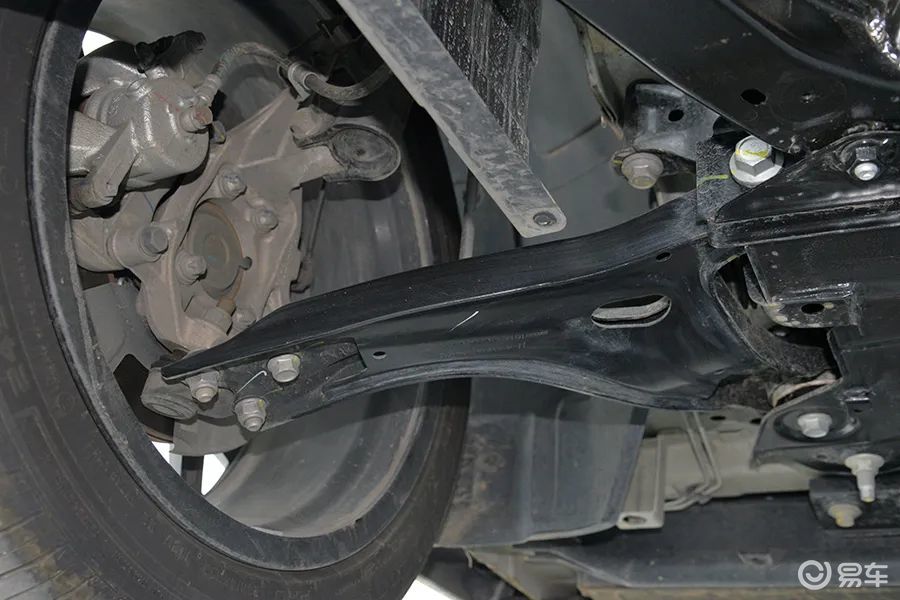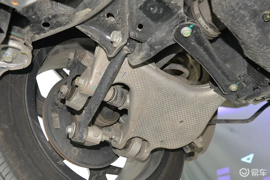 前悬是常见的麦弗逊结构,下摆臂是双层冲压钢板,中规中矩。不过,前转向节居然是铝合金材质,这个价位并不多见。