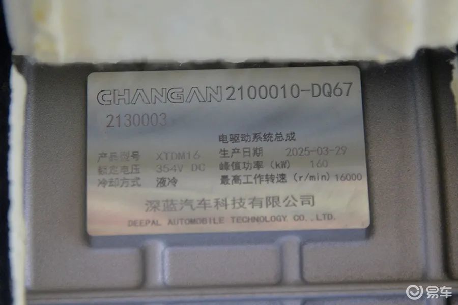 电机来自于深蓝,工作电压为354伏,最大功率160千瓦,最高转速16000转/分钟。